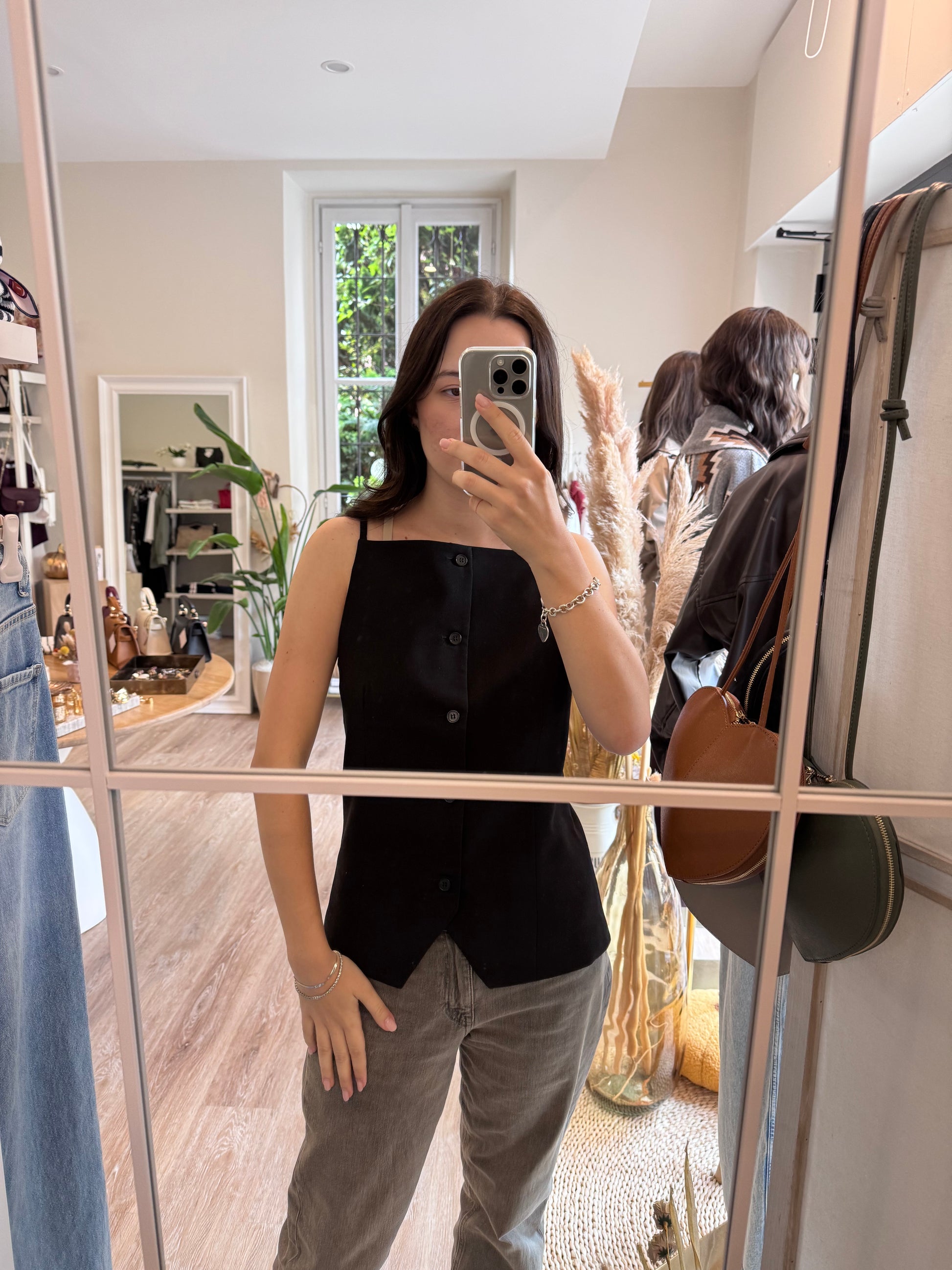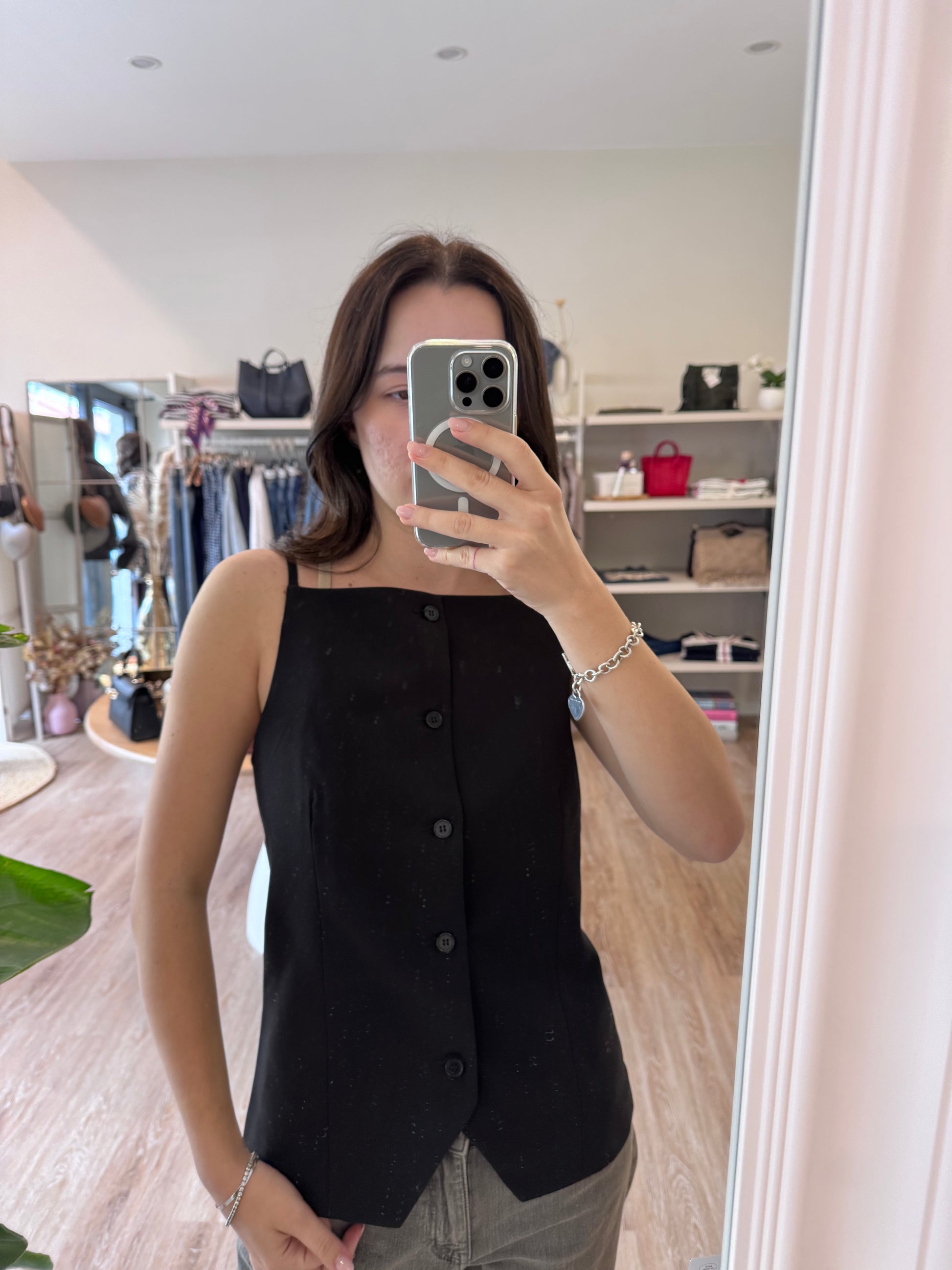 Gilet con scollo quadrato e bottoni