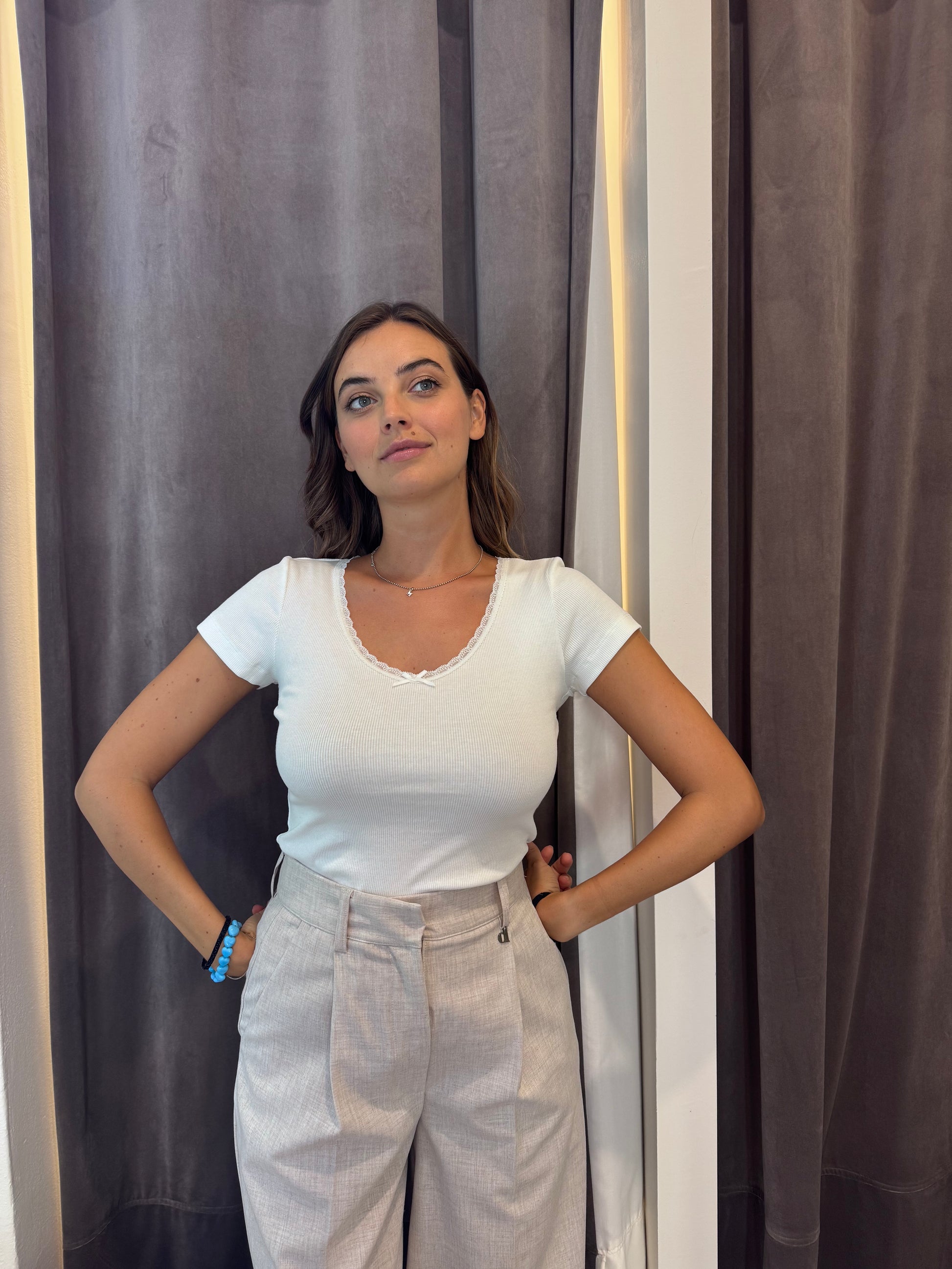 T-shirt effetto intimo a costine con fiocchetto