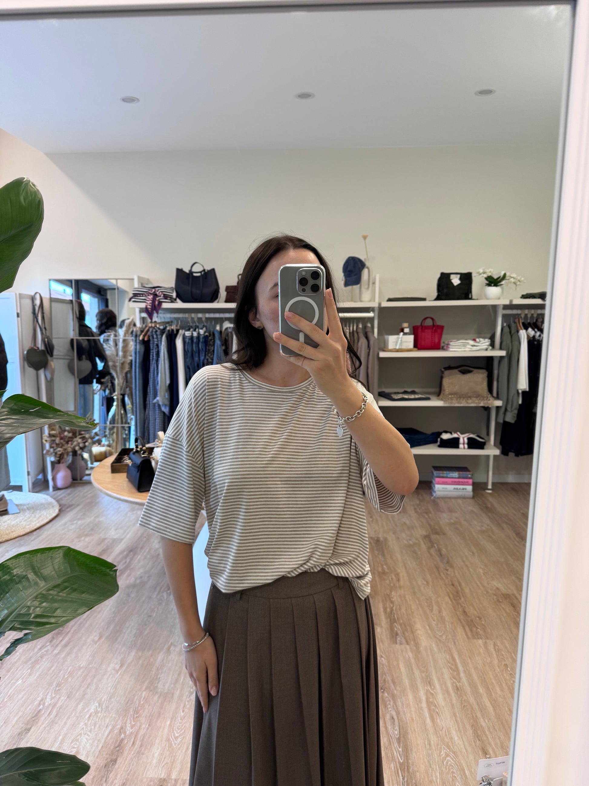 T-shirt a righe con manica a 3/4 , vestibilità oversize